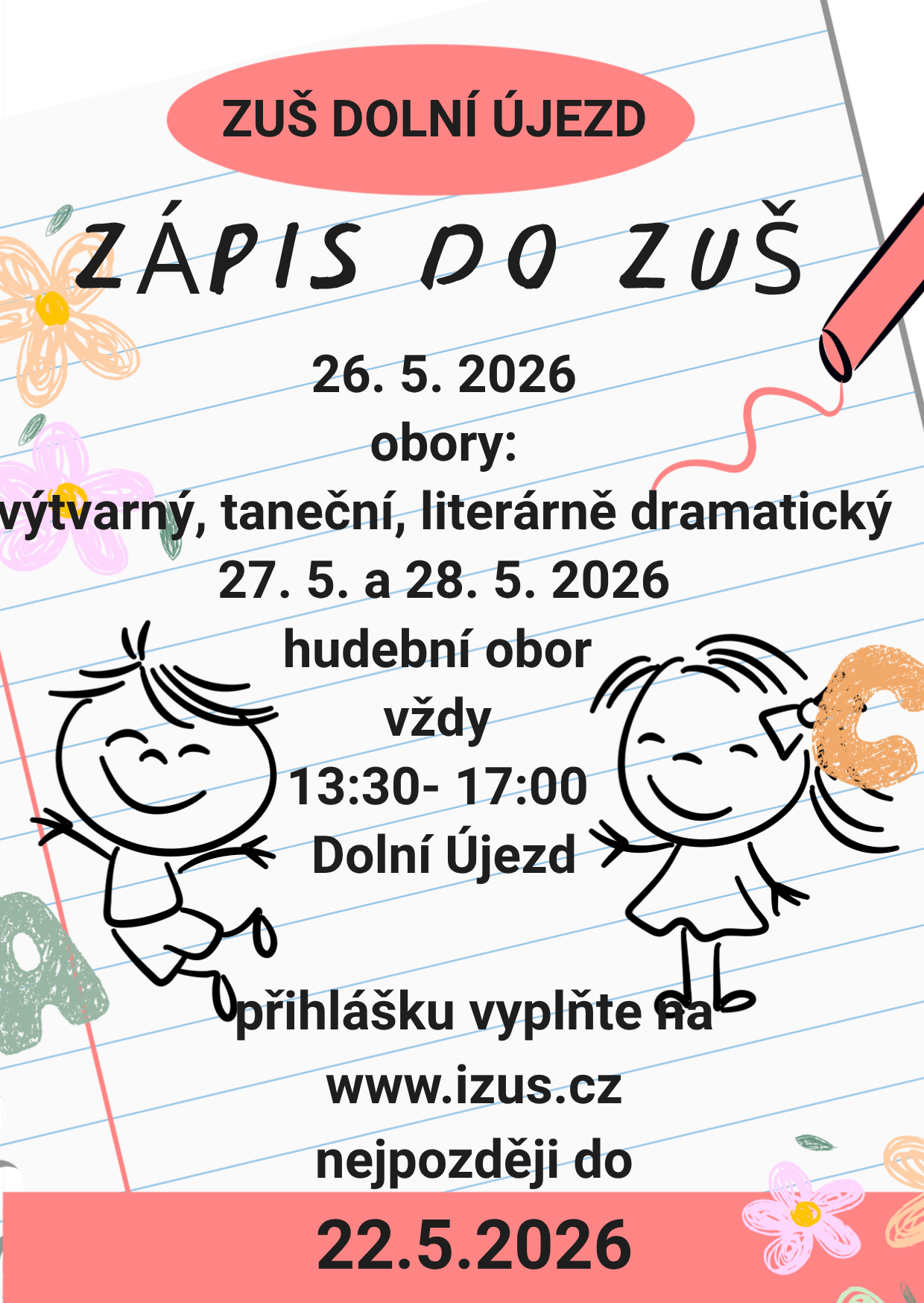 ZÁPIS DO ZUŠ PRO ŠKOLNÍ ROK 2026 - 2027